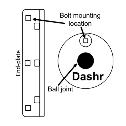 - To do this, you will need to stick the square baseplate to the wall at the height of your choosing. If the ball joint is not already on the baseplate, use the included hardware and screw on the ball joint.